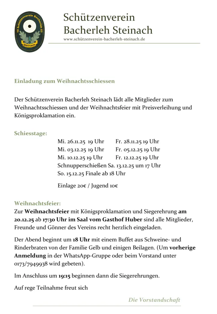 Termine - "Schützenverein Bacherleh Steinach: Gemeinsam ins Ziel!"
