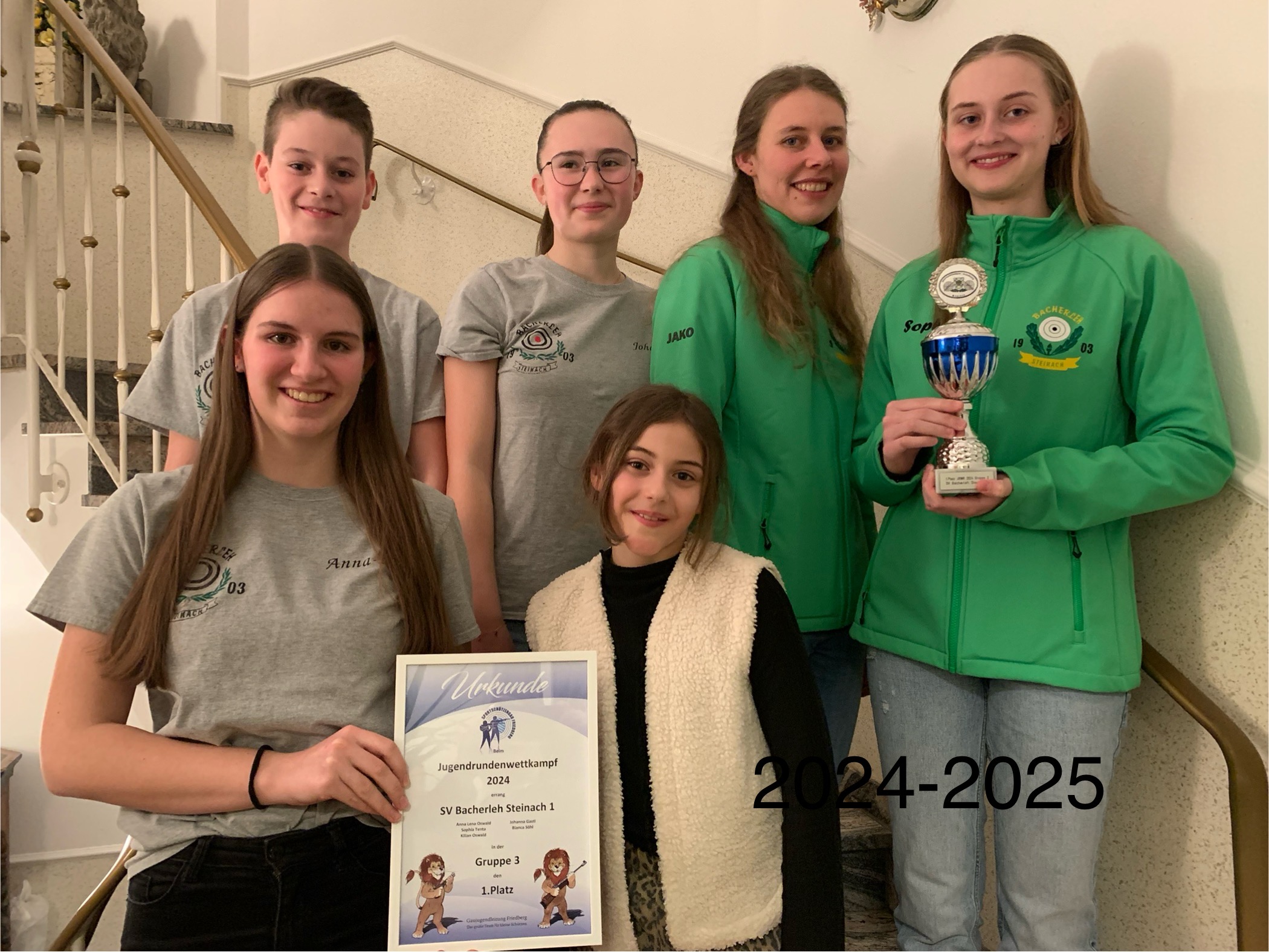 Vordere Reihe v.li.n.re.: Reinhard Heinzelmann, Lukas Gastl 1. Platz Schüler 1, Jonas Bichler 1. Platz Schüler 2, Elias Tenta 2. Platz Schüler 1, Johanna Gastl 2. Platz Schülerin 2, Sophia Tenta 1. Platz Schülerin 2.